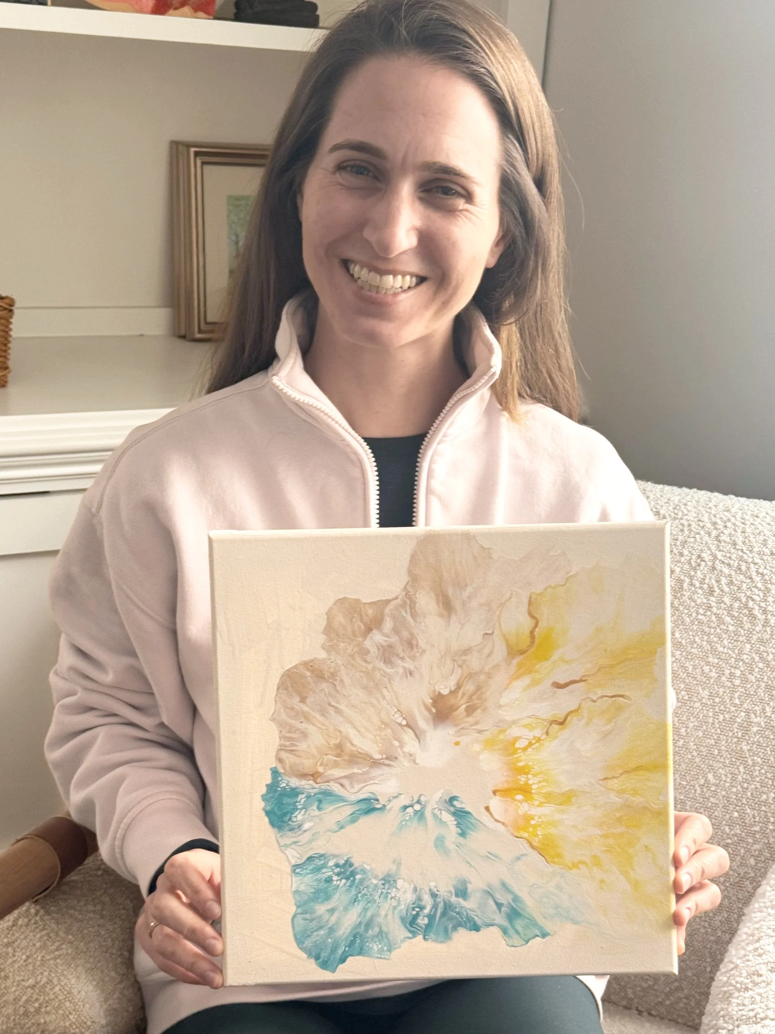 Aura Poura paintings are intuitive and one‑of‑a‑kind, created from the unique movement and tone of your energy. Because each piece is custom and made specifically for you, I don’t offer refunds or repaints — but I do make sure you feel comfortable before I begin. You’ll have the chance to share any color dislikes at check out so your piece aligns with your taste as well as your energy. My goal is for your painting to feel meaningful, personal, and true to you.